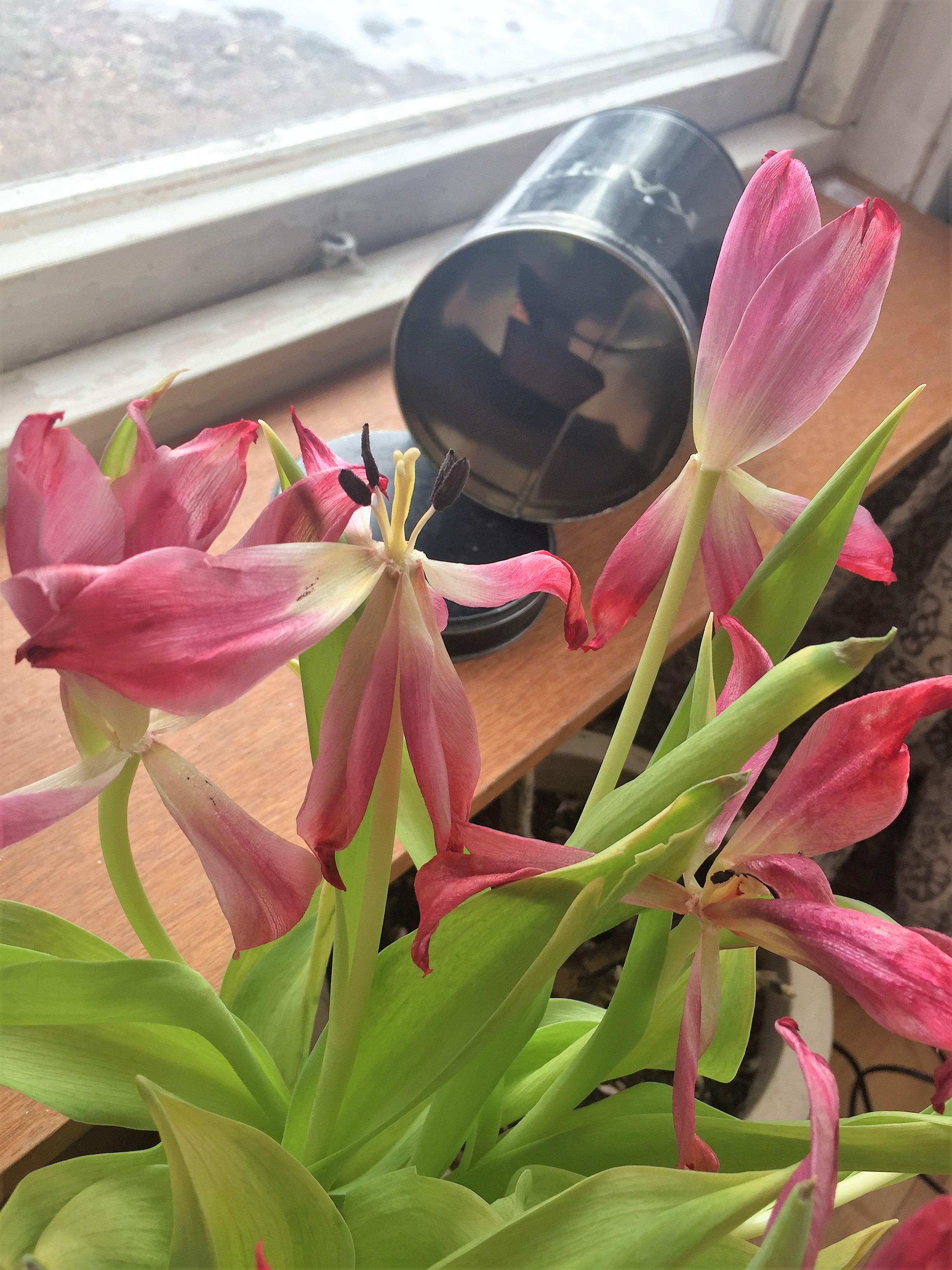 Tulpanerna i dag. Och kaffet är slut.